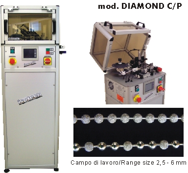 Maquina ultra compacta para elaboraciones de diamantado y punteo sobre una cadena de bolitas, de manera alternada o integral.